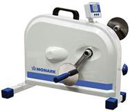 Tabletop ergometer is compact and simple to use. Features electronic readouts of pedal r/min., total pedal revolutions and time. Control knob adjusts brake force. Includes handle for easy transport. Measures 24"L x 18"W x 21"H.